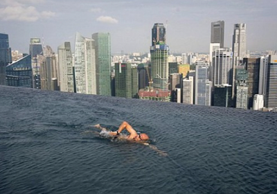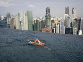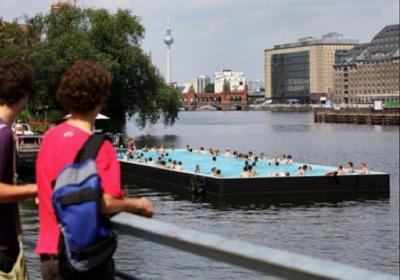 A Singapore invece c’è il , Marina Sands SkyPark un parco con tanto di ponte panoramico sospeso (nel nulla), piscina a sfioro e giardino botanico inaugurato nell’estate del 2010, che poggia su tre grattacieli a 200 metri da terra. Berlino invece propone una piscina ricavata dallo scafo di una nave di 32 metri di lunghezza, Il Badeschiff, ancorata sul fiume Spree.